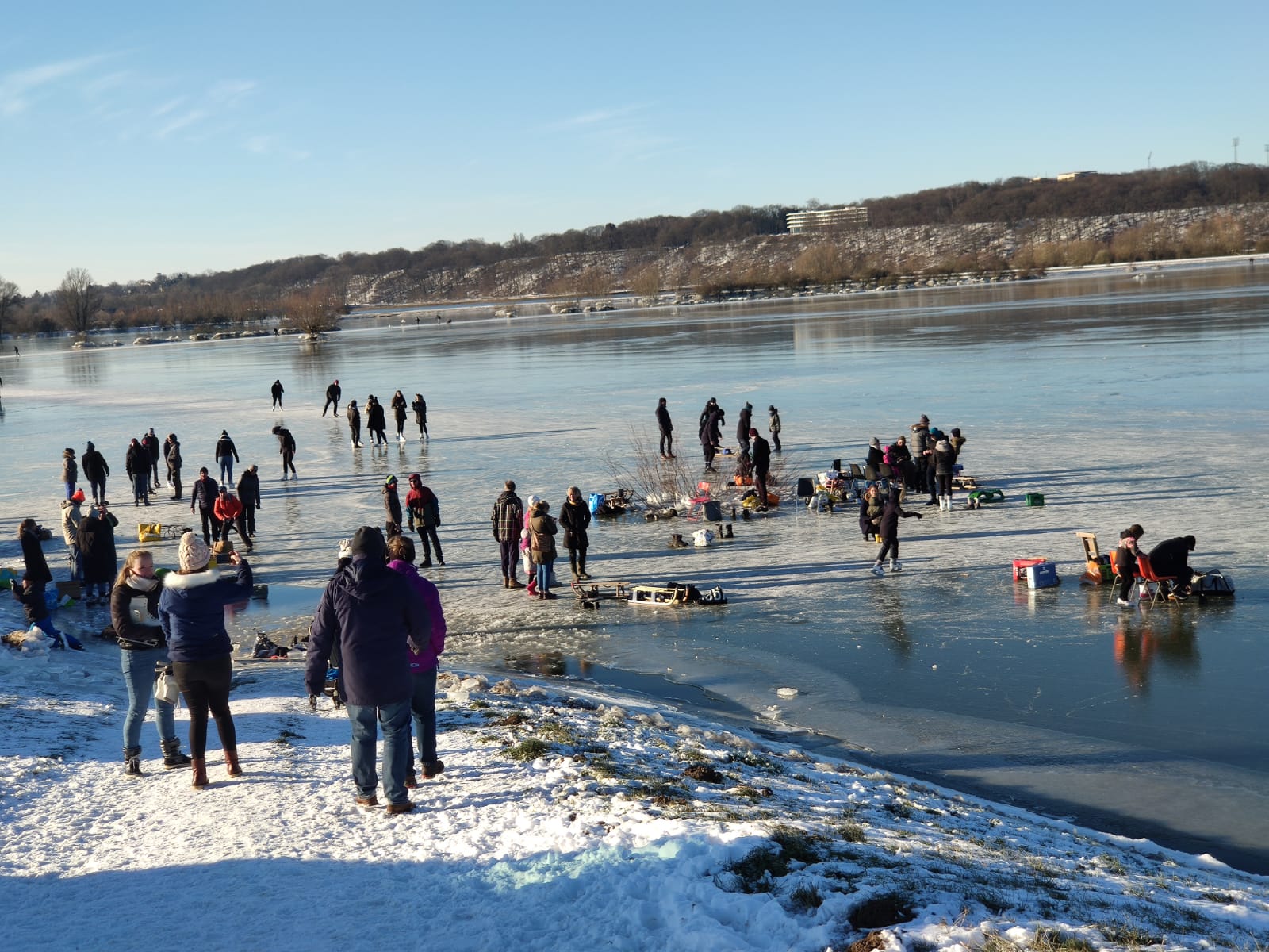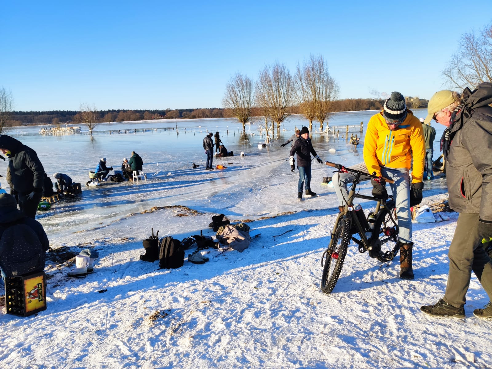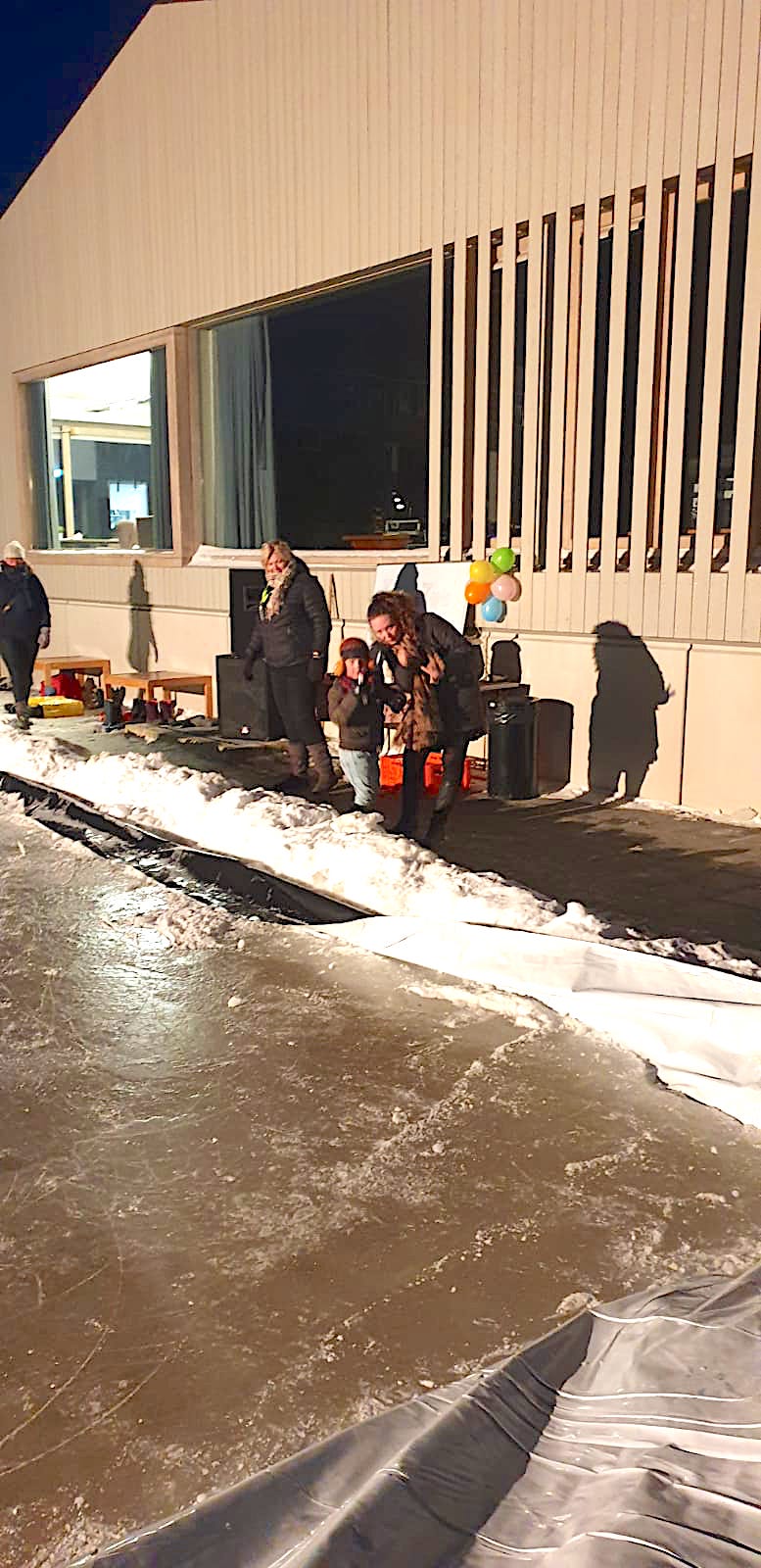 Niemand heeft ooit eerder een schaatsbaan gemaakt hier in Randwijk, dus het is een beetje een experiment hoe het ijs wordt en hoe lang het goed blijft. Iedereen moet dus voorzichtig en vooral vriendelijk blijven naar het ijs en naar elkaar.