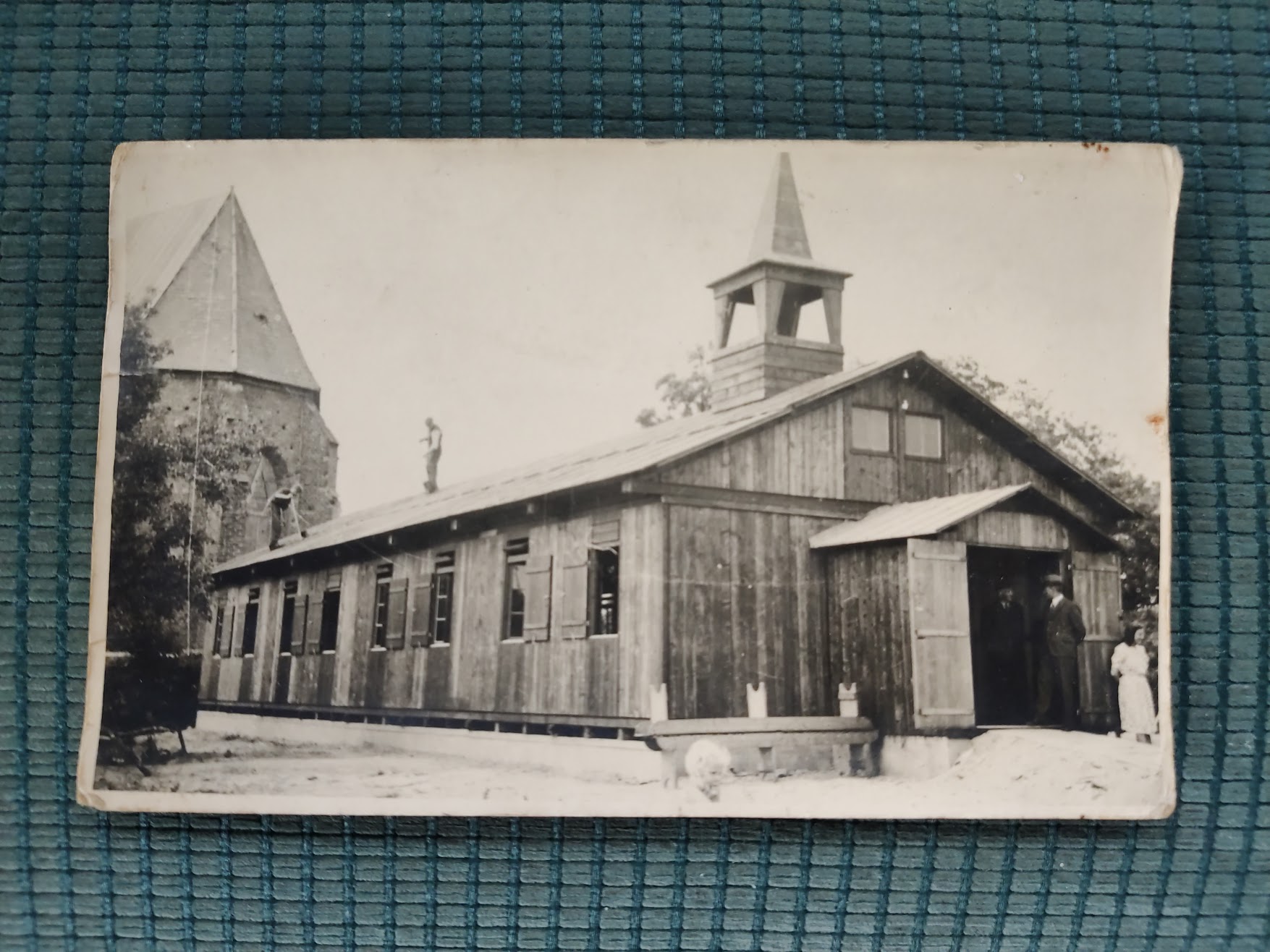 - De houten noodkerk van Randwijk in aanbouw, 1946.